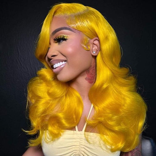 Yellow Colored Human Hair Wig HD Lace Front Wigs Invisible wig Body Wave 13x6 Frontal Lace