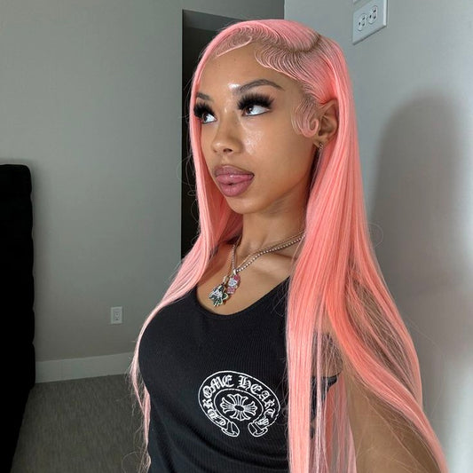 Eloisha Salmon Pink wig Silky Straight Frontal Lace Glueless HD Lace Wig